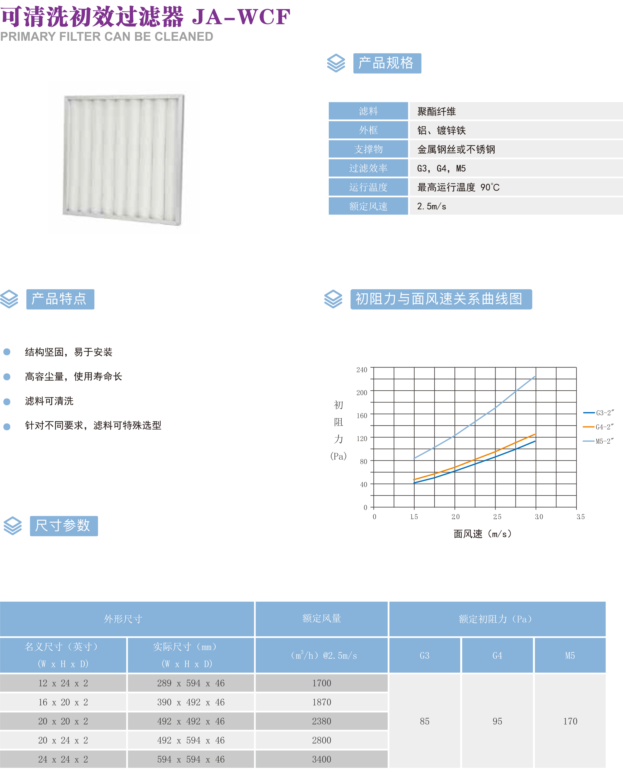 可清洗初效过滤器JA-WCF
