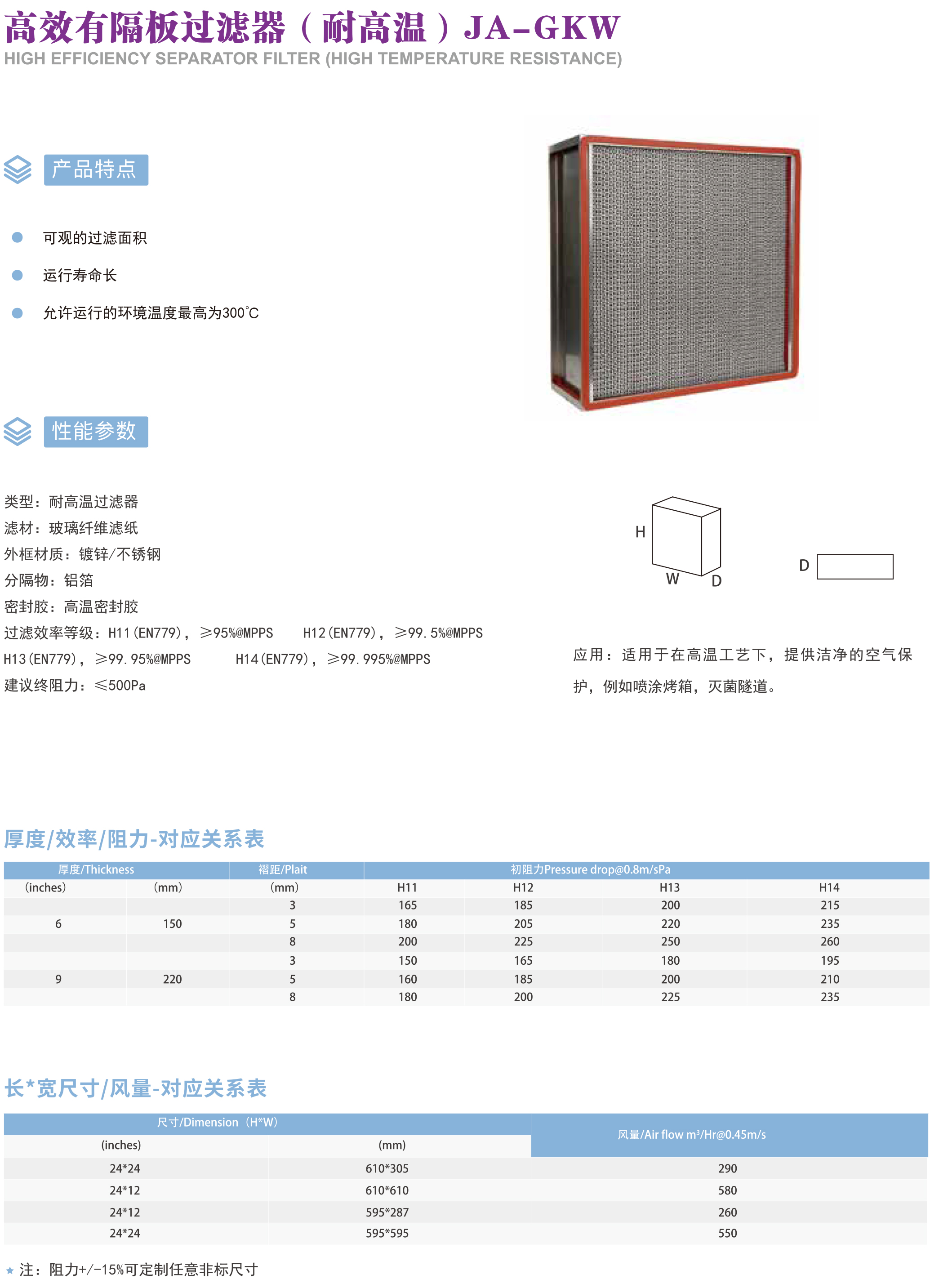 高效有隔板过滤器(耐高温) JA-GKW