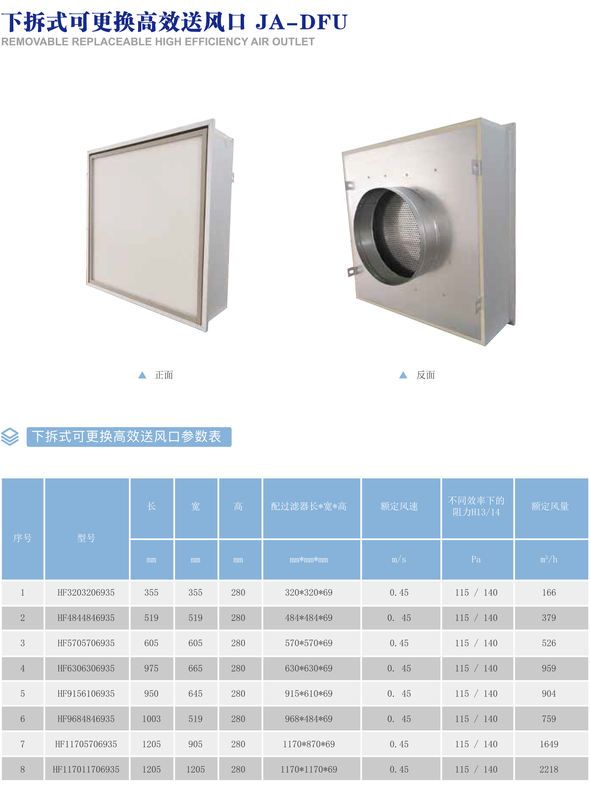 下拆式可更换高效送风口JA-DFU